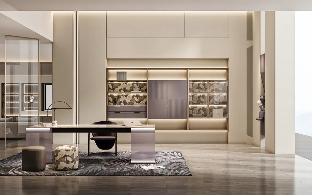 Select finishes influence how light interacts with each surface while maintaining visual calm. Balanced coatings support consistent shading that merges well with surrounding architectural elements. Every controlled layer adds to the cabinetry’s enduring presence, helping the entire room settle into a composed and polished atmosphere.